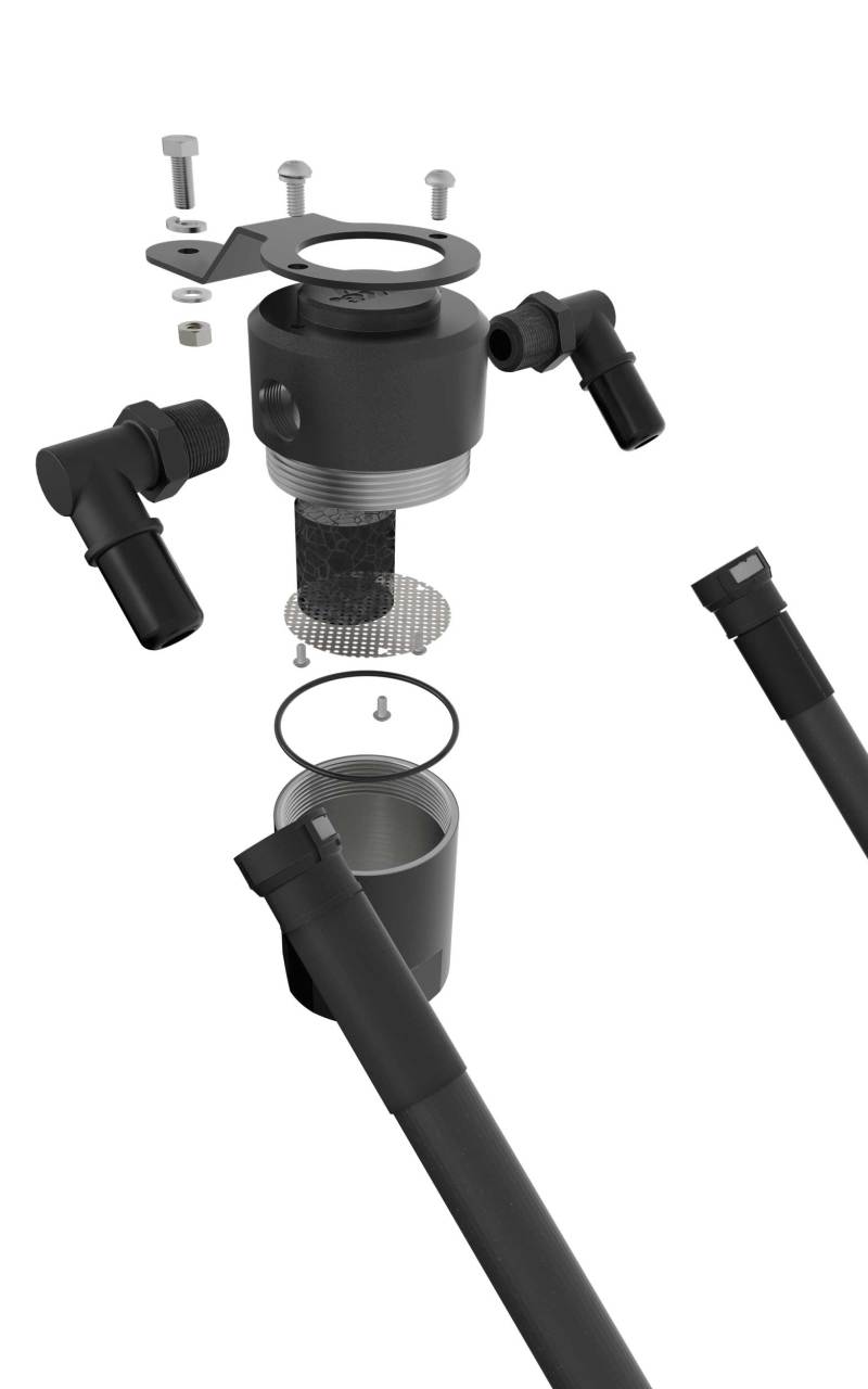 The K&N Air Oil Separator protects the engine and intake tract from blowby by capturing the oil in our industry leading high capacity reservoir. This helps prevent power loss and possible engine damage caused by blowby. The K&N Air Oil Separator is quick and easy to install in about 30 minutes with basic tools and uses factory-style hose connections to quickly snap on and off. The oil separator replaces the factory line from the crank case allowing the oil separator to be mounted to a coinvent location in your engine bay. No tools are needed to check and empty the oil collector reservoir. Each unit is engineered specifically for your vehicle and is backed by our No-Hassle Lifetime Limited Warranty.