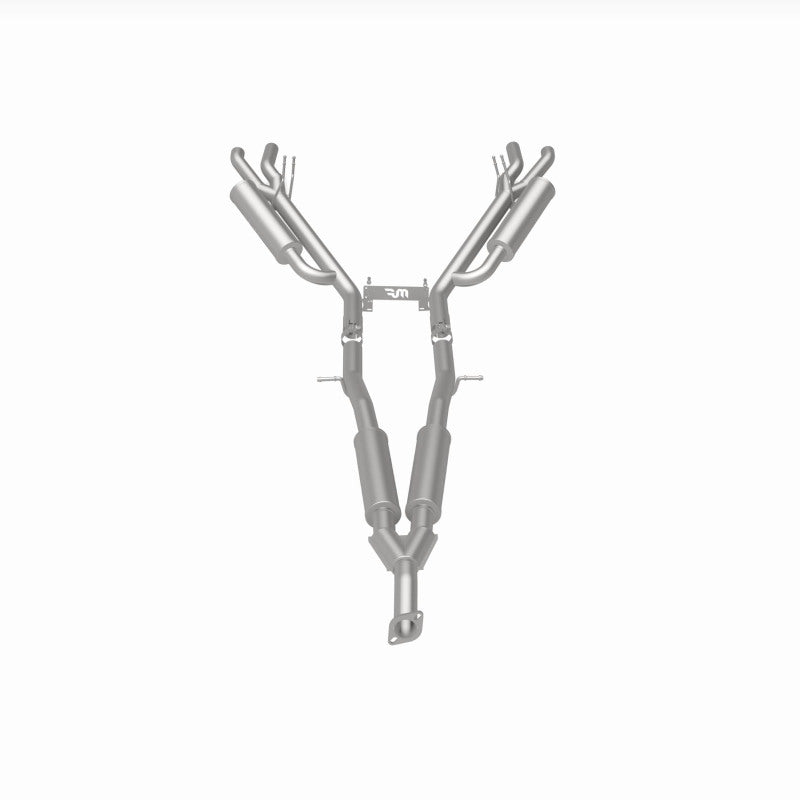 The MagnaFlow 2018-2021 Kia Stinger Competition Series Cat-Back Performance Exhaust System 19405 brings an aggressive, attention-grabbing edge to the deep resonant exhaust note we're so well known for. This exhaust kit is designed to enhance your 2.0L 2018-2021 Kia Stinger with dyno-proven performance made possible thanks to fast-flowing mandrel bent 2.5in. main piping and 4 Straight-Through;Tuned Chamber mufflers ending in a Quad Split Rear exit featuring a sporty finish. The exhaust system's cat-back layout replaces your ride's exhaust system from near the catalytic converter on back. Exhaust system 19405 is engineered to make your vehicle's engine produce Aggressive exterior and Moderate interior sound levels, befitting its competition-oriented design. 19405's direct-fit design makes installation a breeze thanks to the use of advanced 3D scanning techniques. This performance exhaust system is made of 100% durable and corrosion-resistant stainless steel and produced using CNC precision robotic manufacturing, all backed by MagnaFlow's limited lifetime warranty. Please check to ensure compliance with local noise regulations.