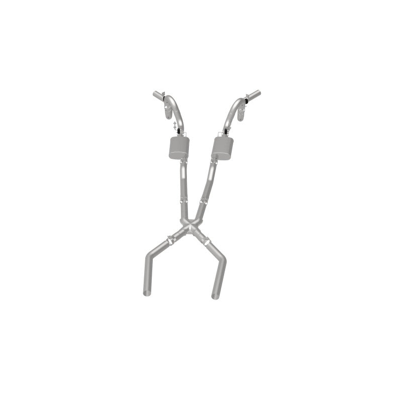 The MagnaFlow Street Series Crossmember-Back Performance Exhaust System 15898 brings enhanced engine sound and dyno-proven performance to your muscle car with a healthy helping of our deep, resonant signature exhaust note at Aggressive exterior and Moderate interior sound levels. Thanks to its durable, corrosion resistant stainless steel design, this exhaust system will handle whatever tarmac you decide to leave your mark on. This performance exhaust kit features a crossmember-back layout designed to replace your exhaust system from the crossmember on back. With its fast-flowing, mandrel bent 3in. main piping and 2 Straight-Through mufflers ending in a Dual Split Rear Behind Rear Tires exit that you can enhance with tips of your choosing, your muscle car will be sounding as awesome as it looks. Extensive 3D scanning during development has resulted in a direct-fit design that you can easily install yourself. 15898 is produced using CNC precision robotic manufacturing techniques and is backed by MagnaFlow's limited lifetime construction warranty.
