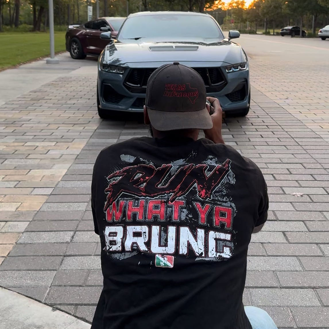 Our latest design featuring the iconic " run what ya brung " saying that highlights the racing culture. We don't wanna hear about how fast you could, should or will be. Its run what ya brung so line it up or keep it moving! These shirts are a PRE-ORDER and expected to ship in the next 2-3 weeks. The shirts are 100% cotton with a 6.5oz weight, not your average thin/light shirt. These are made to LAST!